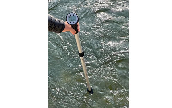 流速探頭可用于測量溝渠水流的平均流速。只要渦輪螺旋槳傳感器在水流中,計算機就會平均水的流速。每秒獲取一個讀數(shù),并顯示連續(xù)的平均水流速度。要獲得平均流速,把流速探頭慢慢地移過要測量的橫截面。一旦讀數(shù)穩(wěn)定,即得到橫截面的平均水流速度。這可以準確地測量流速,它對出現(xiàn)在一直有波浪的整個水流橫截面的不同流速進行平均。平均水流速度可以按SAVE按鈕保存供以后查看。